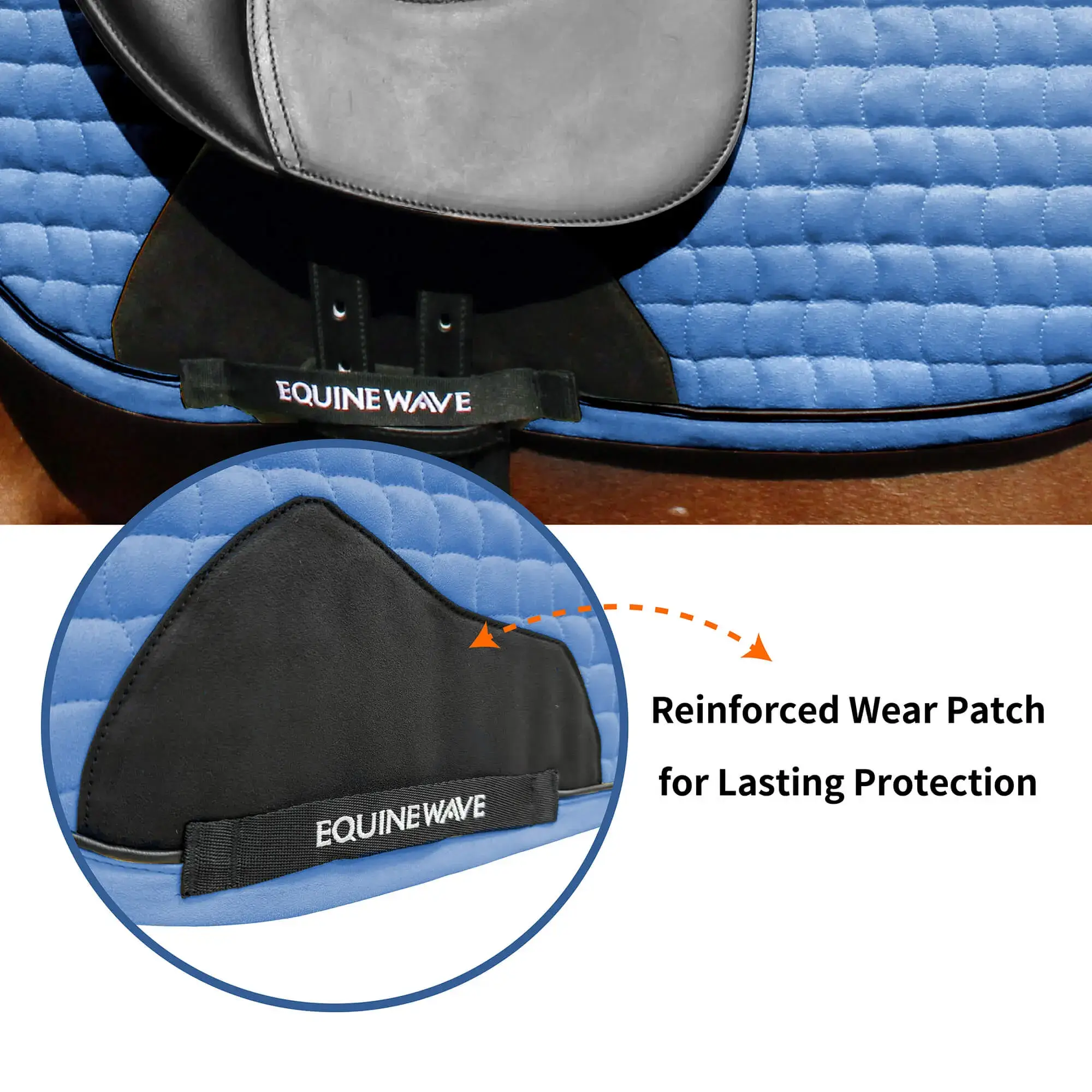 Reinforced Wear Patch for lasting Protection: A designed suede-effect panel resists friction from girth straps and leg movement, ensuring long-term durability without compromising the pad’s elegant finish.