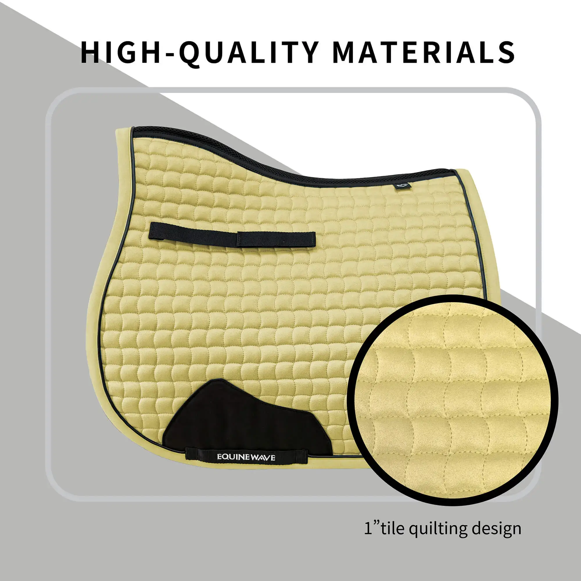 A 1″ tile quilting design: This small pattern enhances the rider’s stability and promotes clear communication between horse and rider, perfect for jumping.