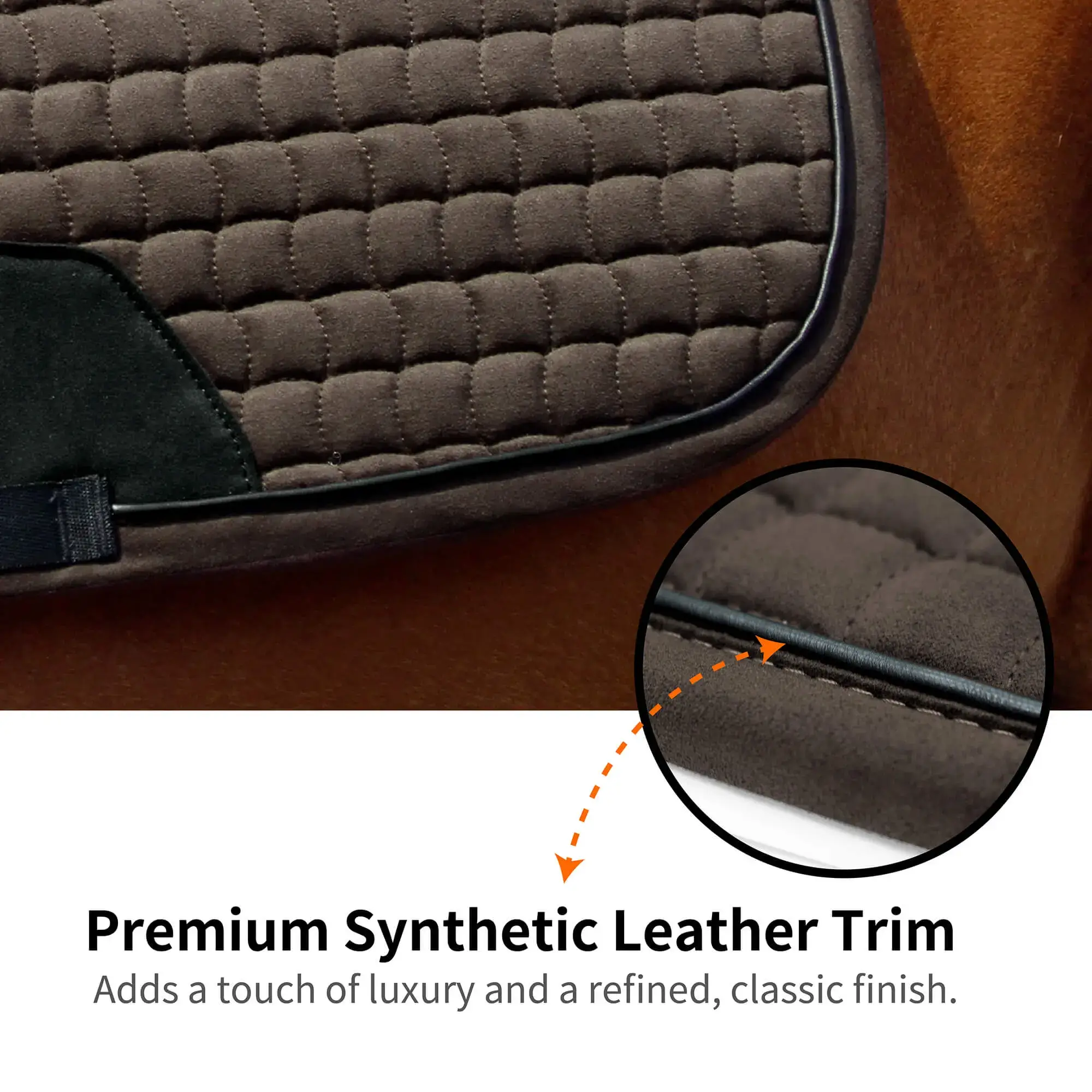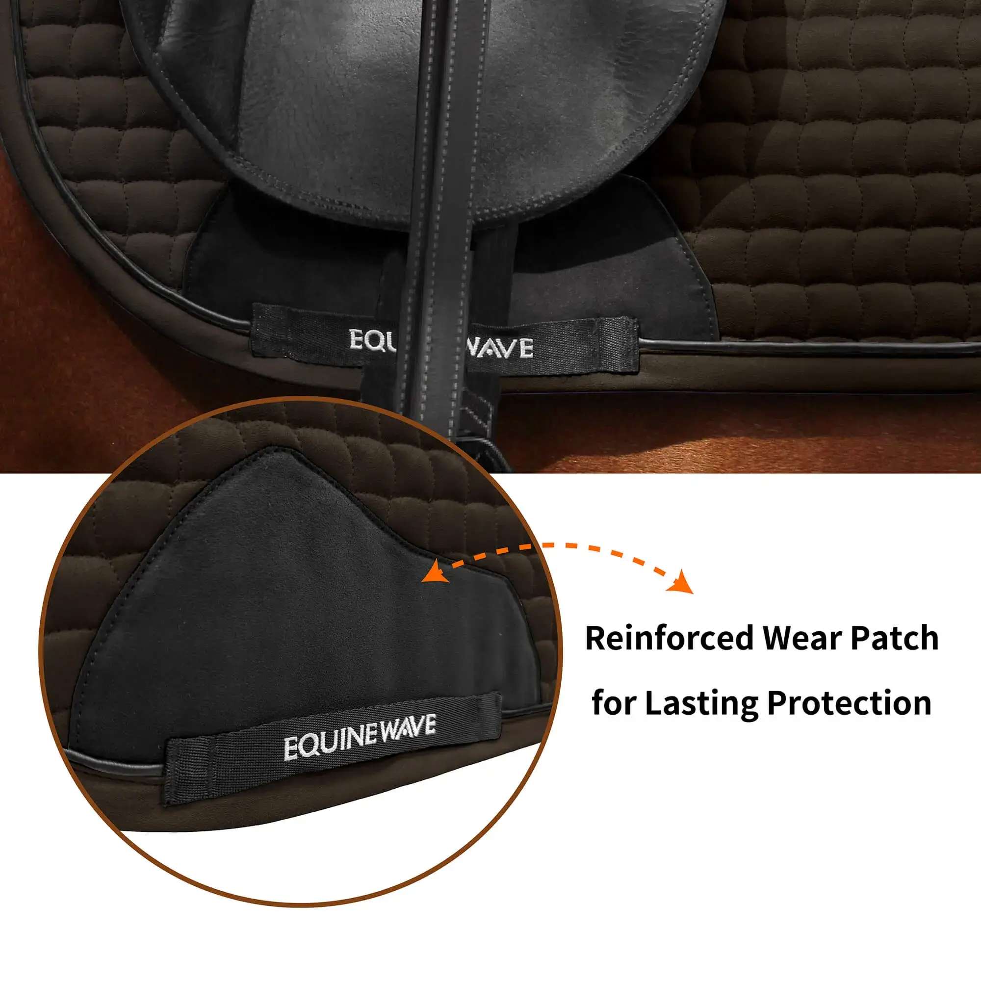 • Reinforced Wear Patch for lasting Protection: A designed suede-effect panel resists friction from girth straps and leg movement, ensuring long-term durability without compromising the pad’s elegant finish.